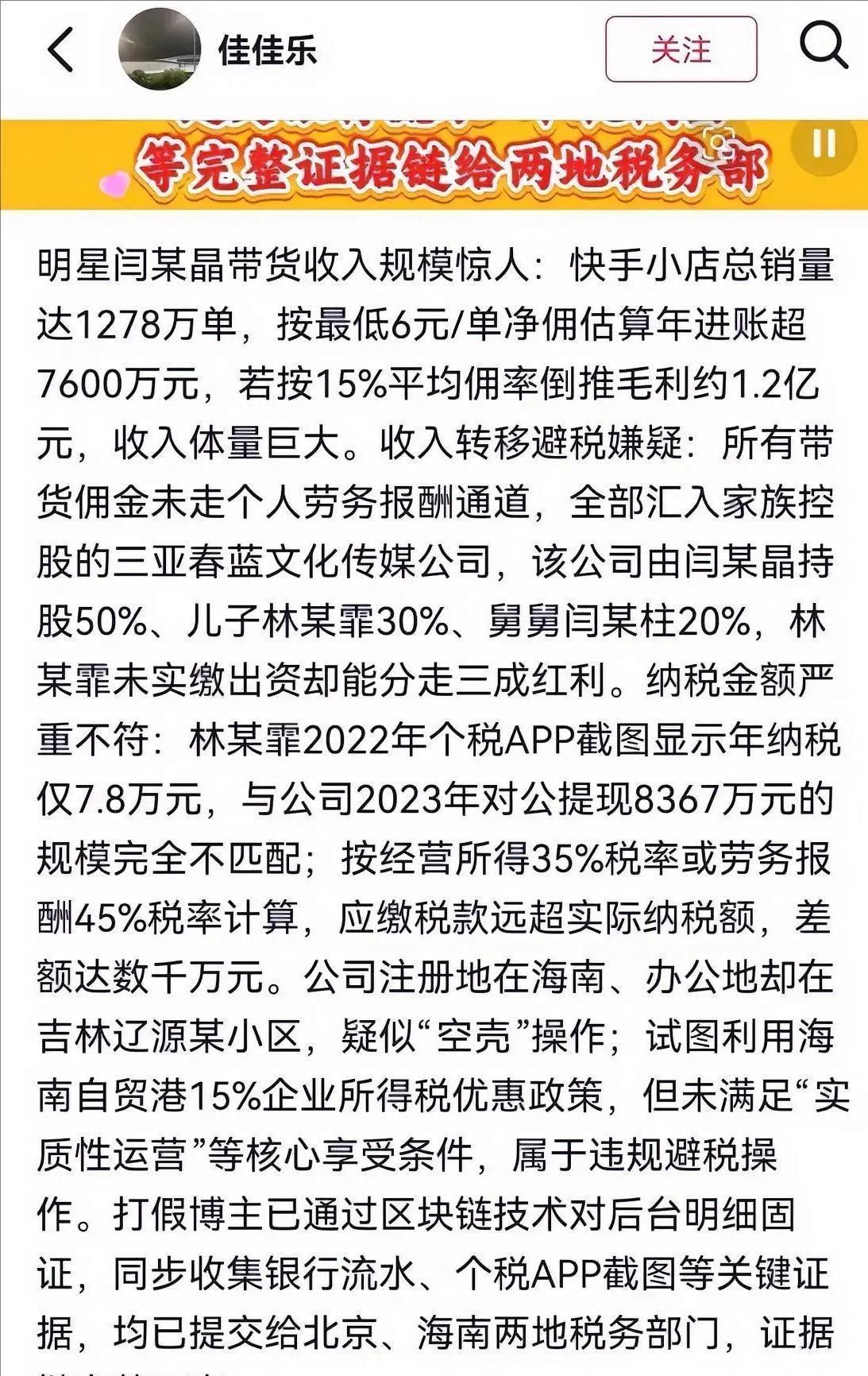 除此之外,还有网友曝出她存在资产转移、规避个税的嫌疑。